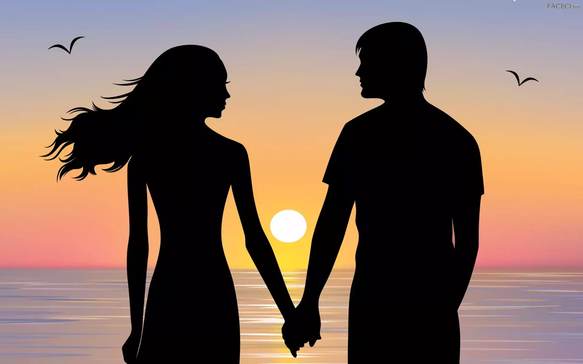 Zachód, Para, Mewy, Miłość, Morze, Słońca - faceci.biz